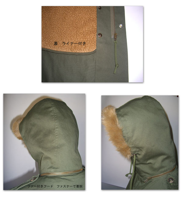 ☆スタンドカラーの衿にはファスナーで取り外し可能なファー付きフードが付きます。